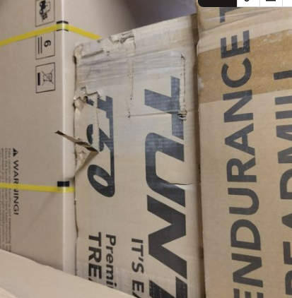 Här är en bild på löpbandet nerpackat i kartong. Tunturi T60. Plats B2:3 i butiken.