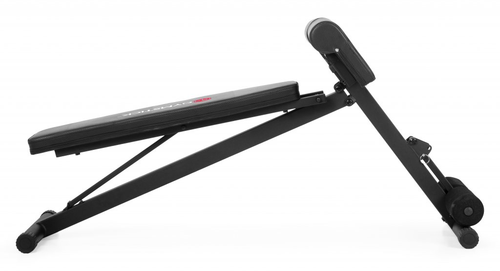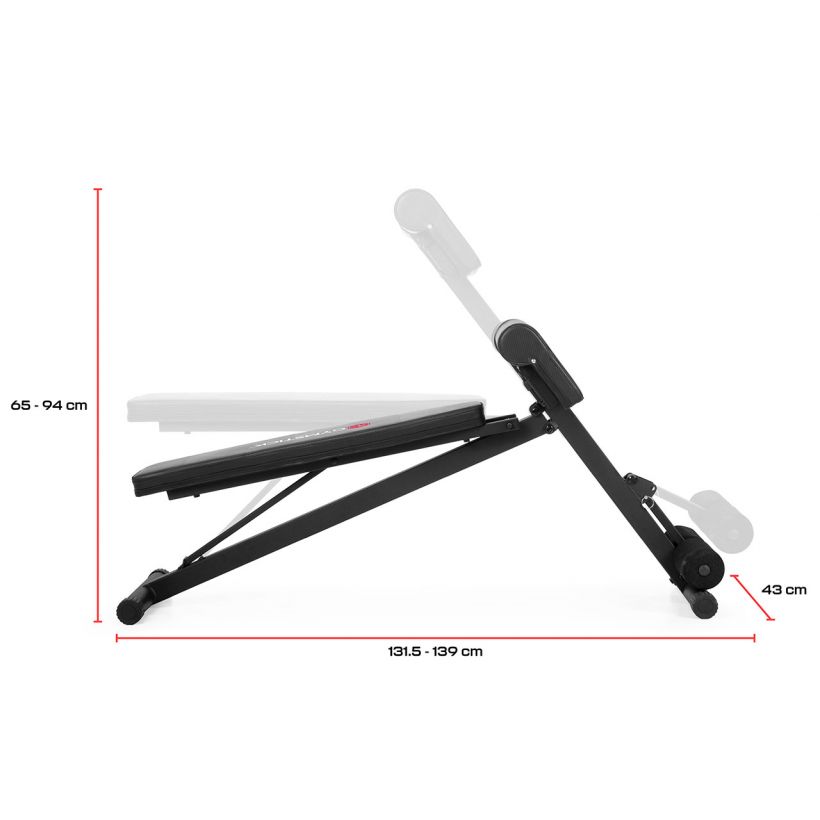 Bänken har en stabil stålkonstruktion och vadderade ytor som ger bra stöd under träningen. Den är framtagen för att vara enkel att använda, lätt att placera i hemmet och tillräckligt mångsidig för att passa många olika typer av pass.