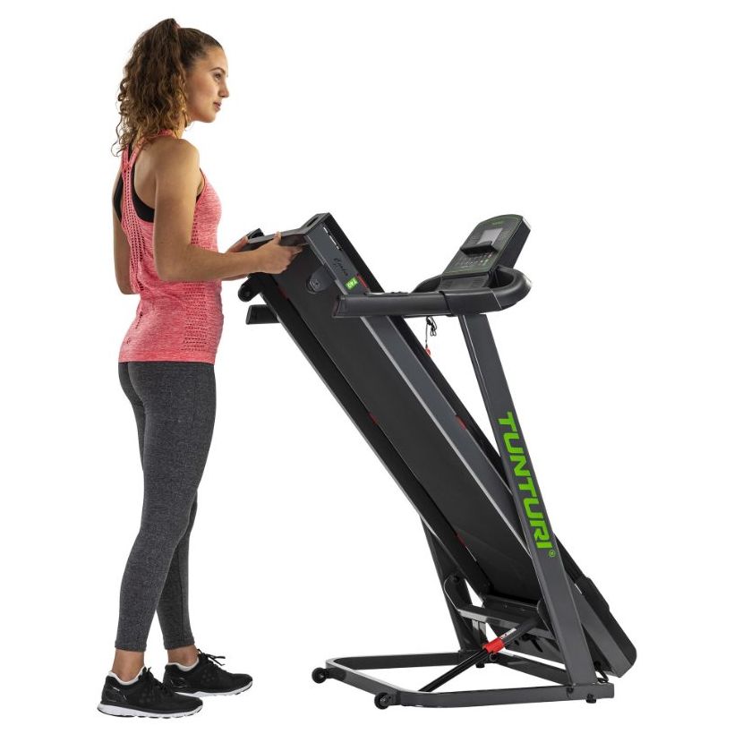 Ta kontroll över din kondition och få mer variation i vardagen med Tunturi Cardio Fit T40. Det här är ett smidigt löpband för hemmaträning med 41 träningsprogram, tydlig träningsdata och en konstruktion som är enkel att fälla upp och rulla undan när du är klar.