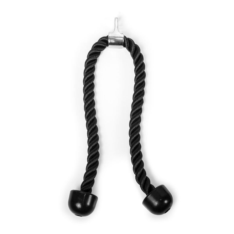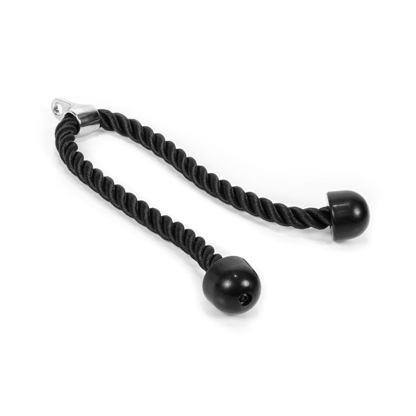 Gymstick Triceps Rope är ett klassiskt tillbehör för kabelmaskiner, särskilt utformat för att träna triceps, biceps och rygg. Repet är tillverkat i slitstarkt syntetmaterial och utrustat med gummistopp i ändarna för säkrare grepp och maximal kontroll vid tunga lyft.
