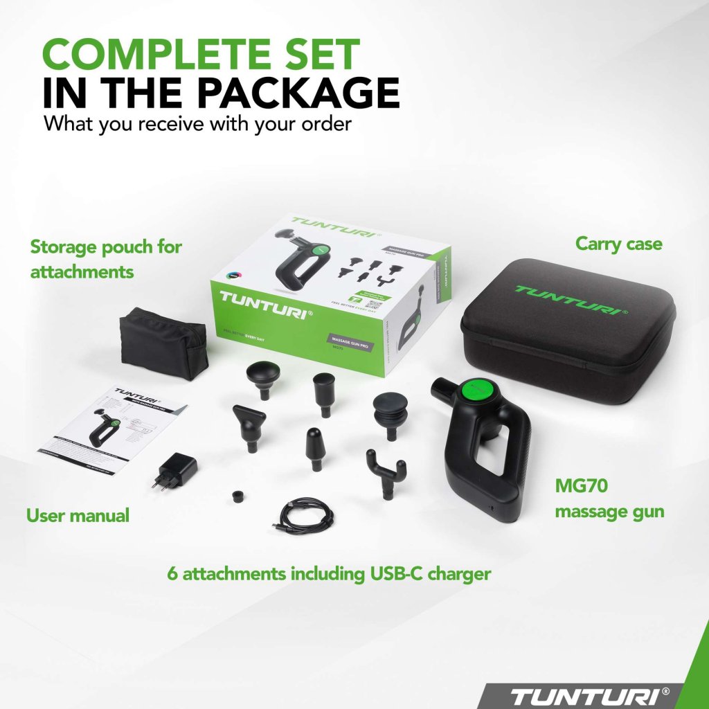 TUNTURI MG70 MASSAGE GUN PRO – KRAFTFULL & TYST MUSKELÅTERHÄMTNING